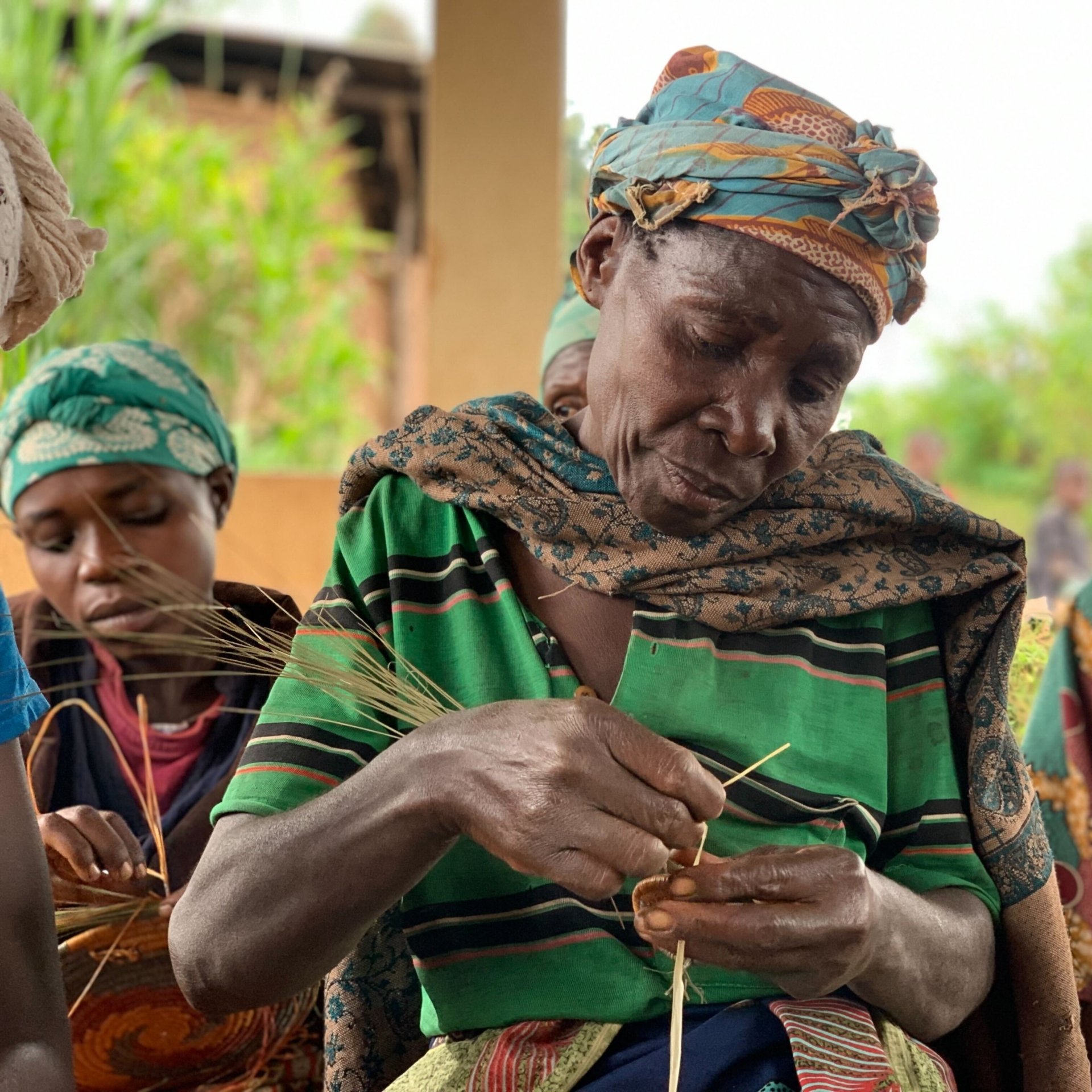 Batwa women weaving traditional baskets in Mpungu Sub County, Kanungu district, Uganda. November 2021. Credit: Samrawit Gougsa/MRG.