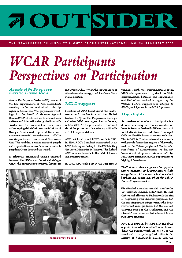 The newsletter of Minority Rights Group International No. 58, February 2002